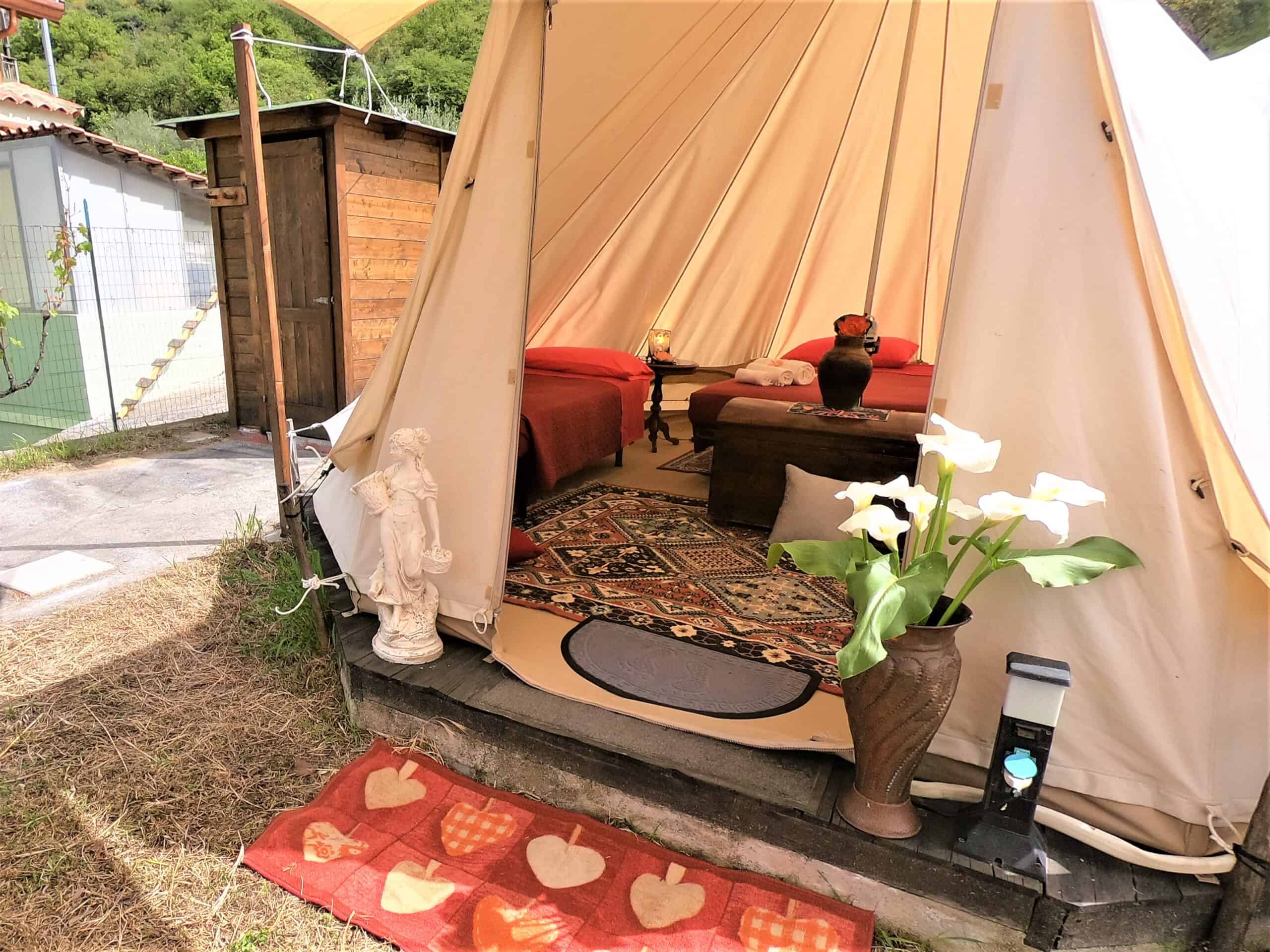 Montate nel nostro giardino delle Gole, le nostre tende allestite in stile etnico offrono lo stesso confort di una stanza di albergo, biancheria letto/bagno sempre compresa. Da quest’anno le tende sono tutte ombreggiate. Il bagno è composto da lavandino wc e bidet. Alcune tende sono provviste di cucine e frigor ad uso esclusivo (vedi listino prezzi). Area esterna, ad uso esclusivo garantendo distanziamento e liberta’ di movimento.